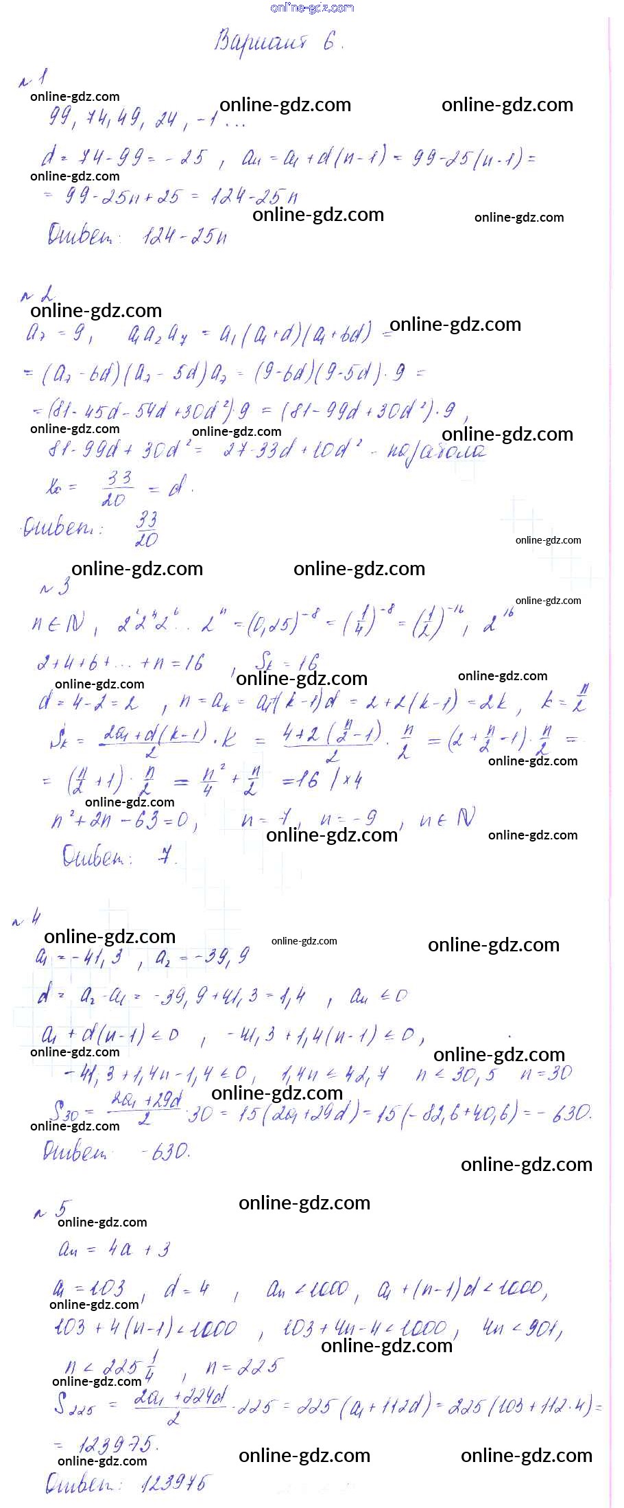 Готовые домашние задания по Алгебре за 9 класс Дидактические материалы Зив, Гольдич 2013 - СР-17. Арифметическая прогрессия Самостоятельные работы вариант 6