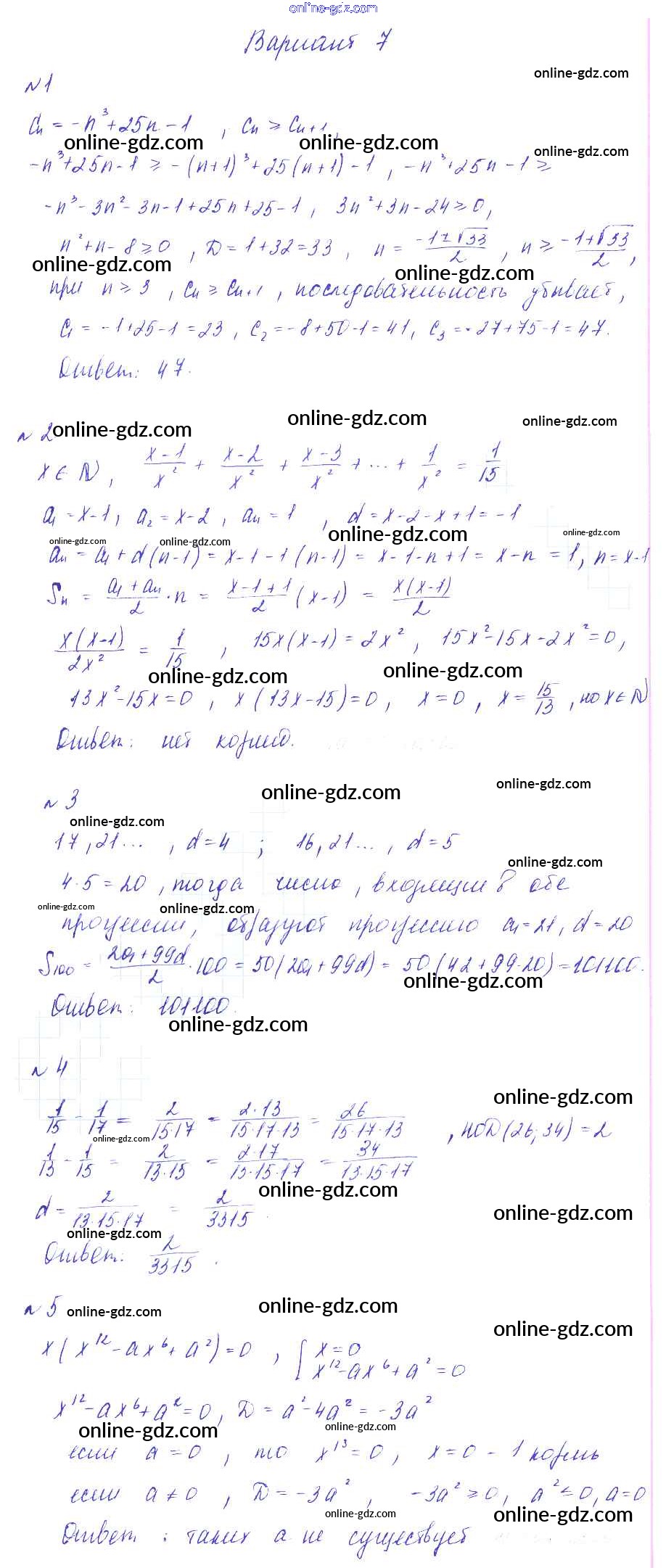 Готовые домашние задания по Алгебре за 9 класс Дидактические материалы Зив, Гольдич 2013 - СР-17. Арифметическая прогрессия Самостоятельные работы вариант 7