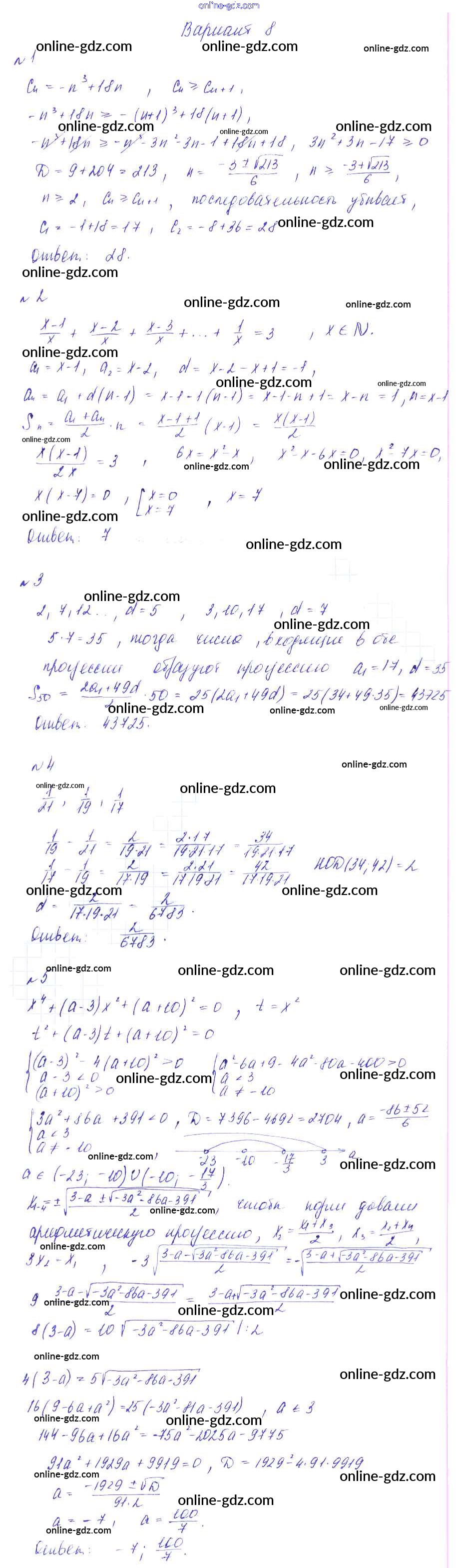 Готовые домашние задания по Алгебре за 9 класс Дидактические материалы Зив, Гольдич 2013 - СР-17. Арифметическая прогрессия Самостоятельные работы вариант 8