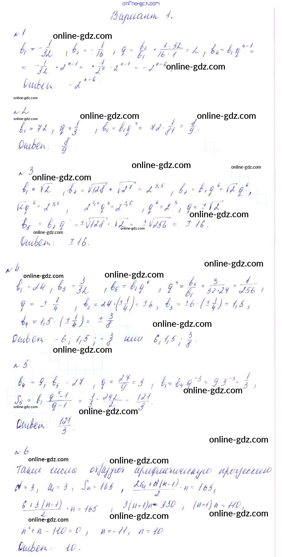 Готовые домашние задания по Алгебре за 9 класс Дидактические материалы Зив, Гольдич 2013 - СР-18. Геометрическая прогрессия Самостоятельные работы вариант 1