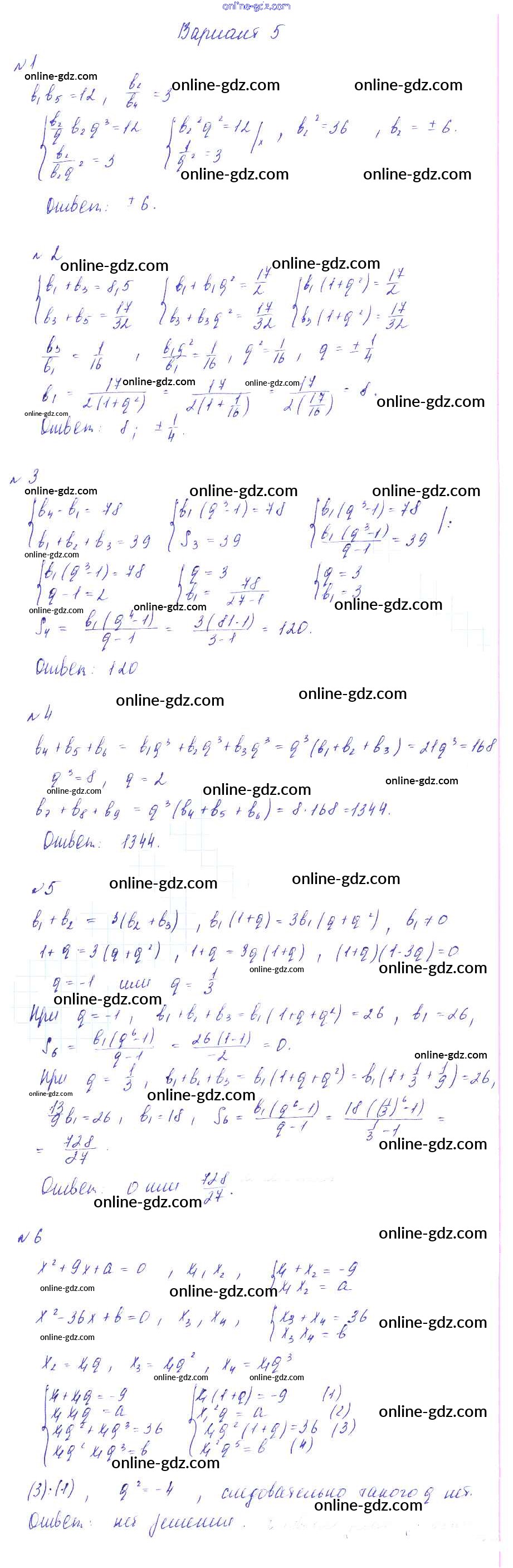 Готовые домашние задания по Алгебре за 9 класс Дидактические материалы Зив, Гольдич 2013 - СР-18. Геометрическая прогрессия Самостоятельные работы вариант 5