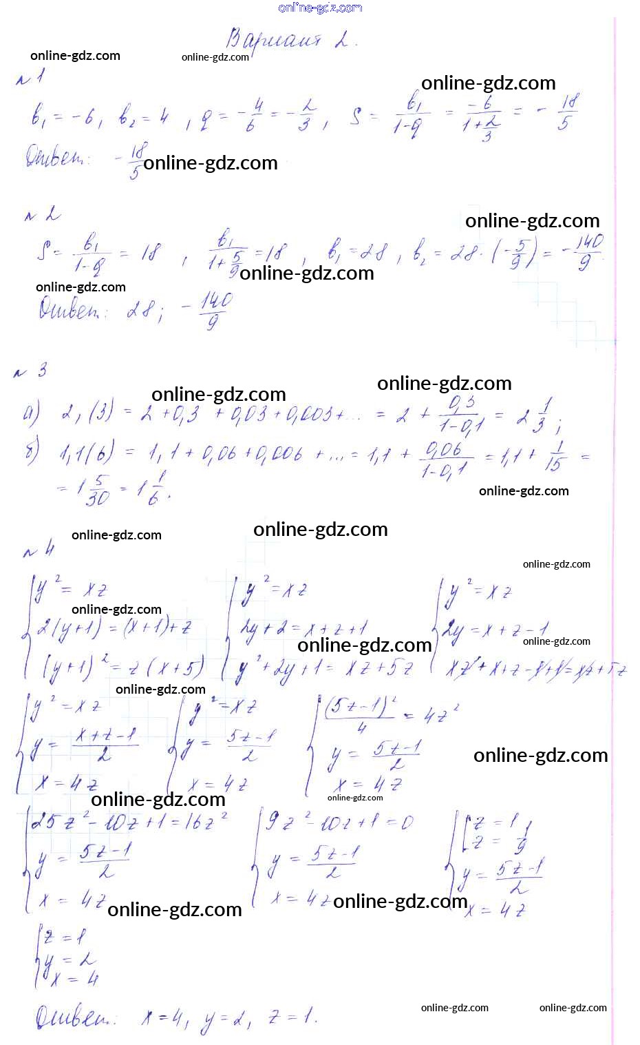 Готовые домашние задания по Алгебре за 9 класс Дидактические материалы Зив, Гольдич 2013 - СР-19. Бесконечно убывающая геометрическая прогрессия. Смешанные задачи на прогрессии Самостоятельные работы вариант 2