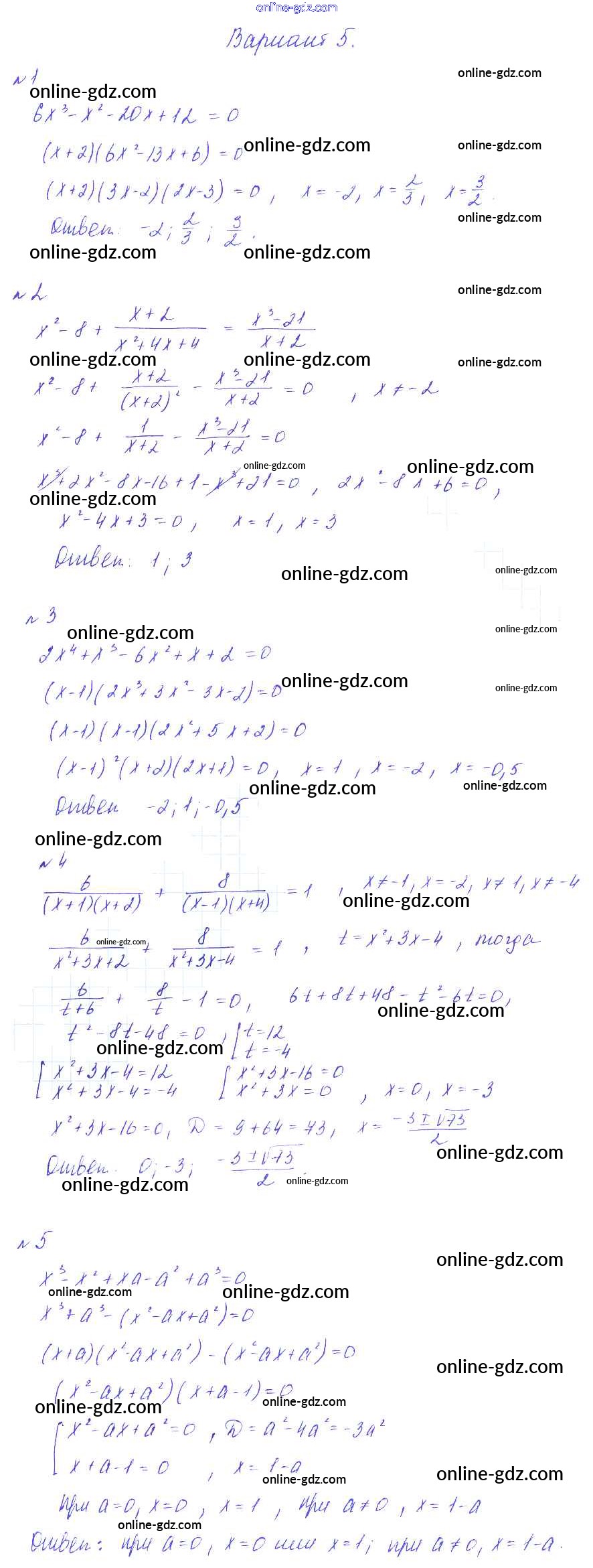 Готовые домашние задания по Алгебре за 9 класс Дидактические материалы Зив, Гольдич 2013 - СР-2. Уравнения, сводящиеся к алгебраическим Самостоятельные работы вариант 5