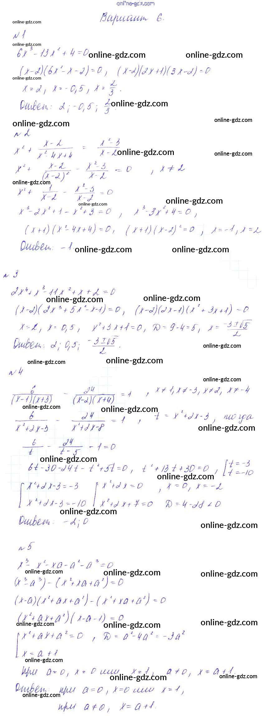 Готовые домашние задания по Алгебре за 9 класс Дидактические материалы Зив, Гольдич 2013 - СР-2. Уравнения, сводящиеся к алгебраическим Самостоятельные работы вариант 6