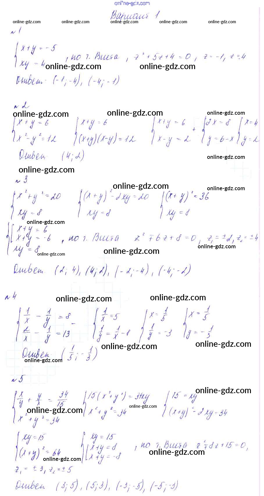 Готовые домашние задания по Алгебре за 9 класс Дидактические материалы Зив, Гольдич 2013 - СР-3. Системы нелинейных уравнений Самостоятельные работы вариант 1