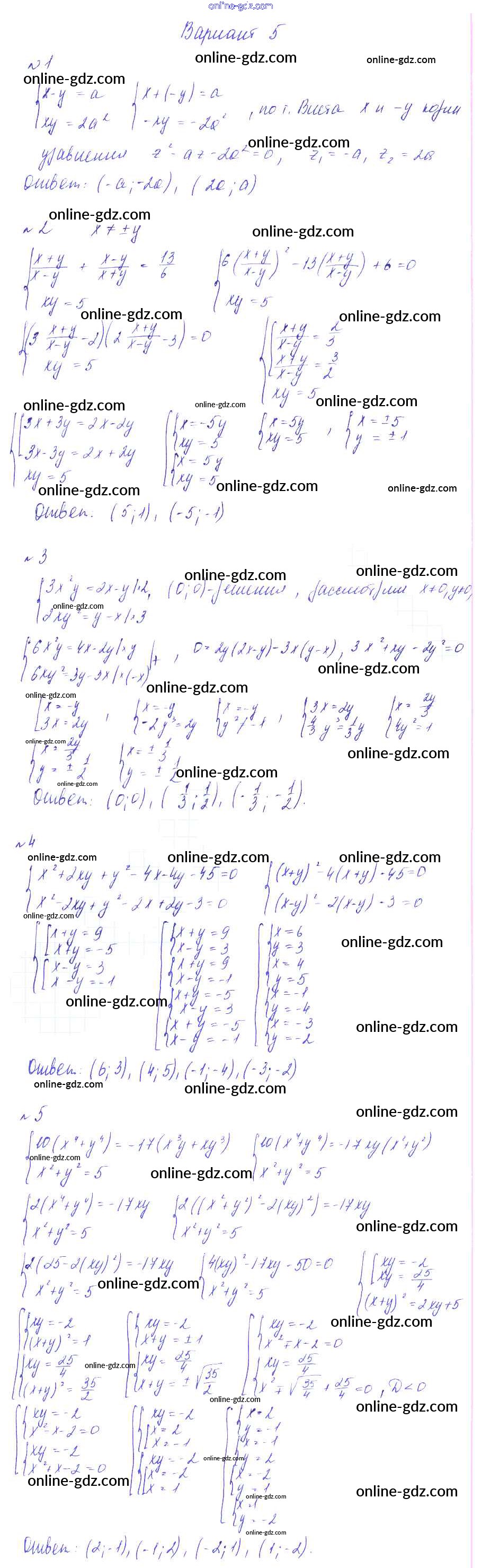 Готовые домашние задания по Алгебре за 9 класс Дидактические материалы Зив, Гольдич 2013 - СР-3. Системы нелинейных уравнений Самостоятельные работы вариант 5
