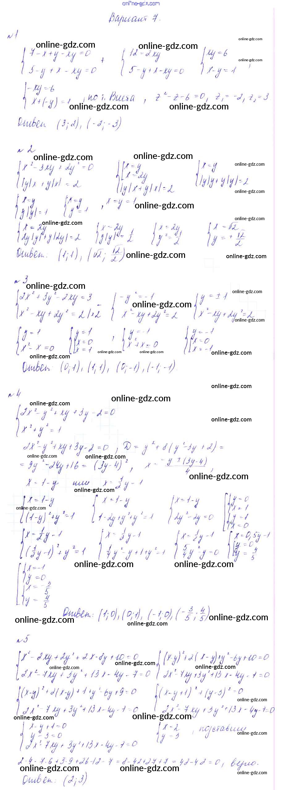 Готовые домашние задания по Алгебре за 9 класс Дидактические материалы Зив, Гольдич 2013 - СР-3. Системы нелинейных уравнений Самостоятельные работы вариант 7