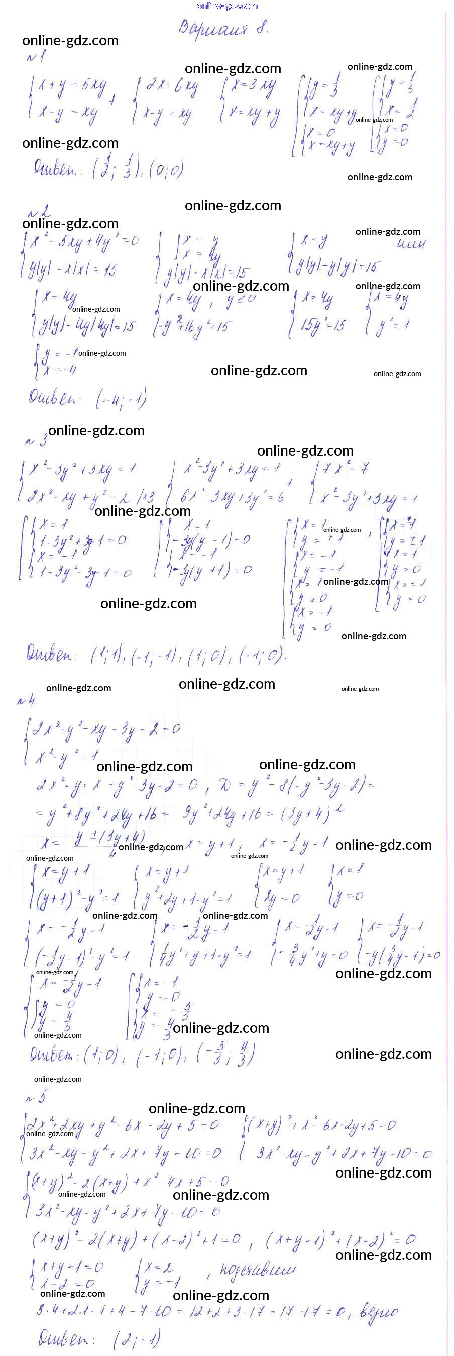 Готовые домашние задания по Алгебре за 9 класс Дидактические материалы Зив, Гольдич 2013 - СР-3. Системы нелинейных уравнений Самостоятельные работы вариант 8