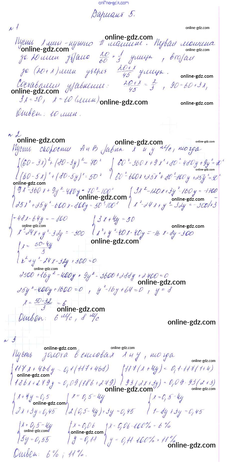 Готовые домашние задания по Алгебре за 9 класс Дидактические материалы Зив, Гольдич 2013 - СР-4. Решение задач с помощью уравнений Самостоятельные работы вариант 5