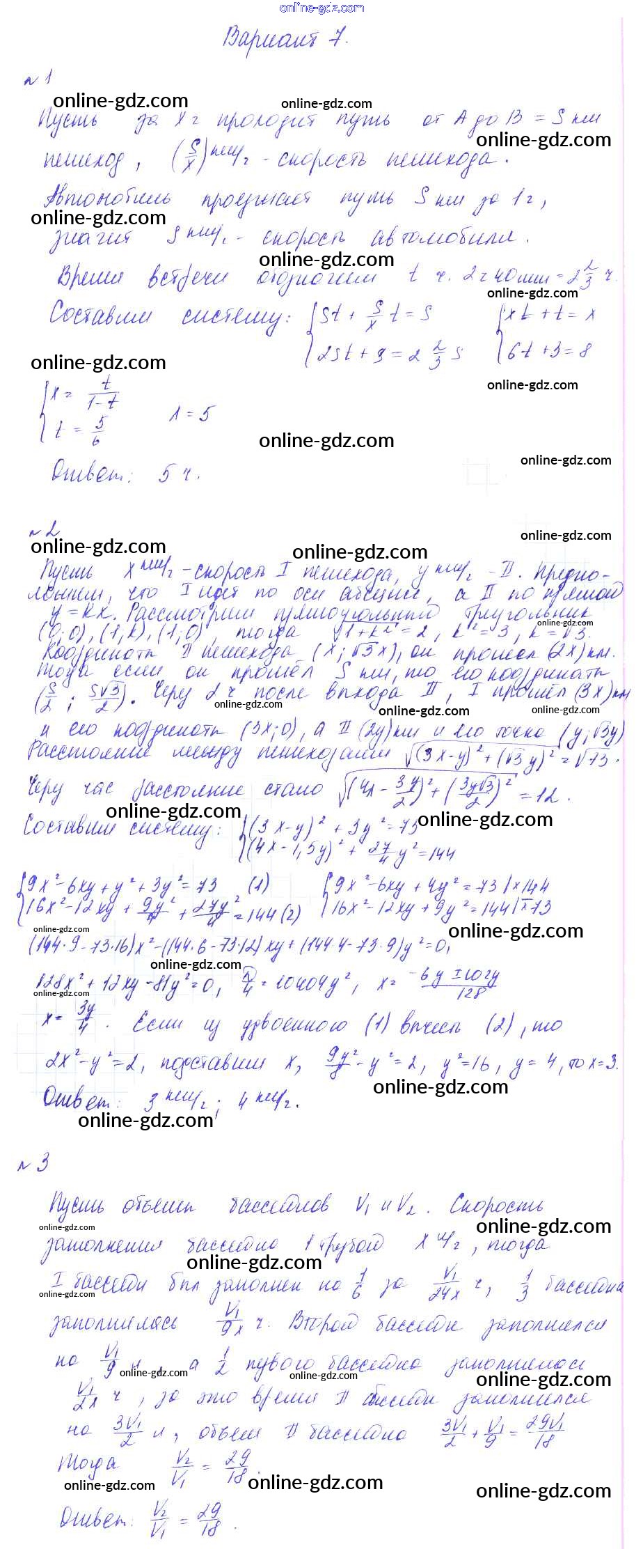 Готовые домашние задания по Алгебре за 9 класс Дидактические материалы Зив, Гольдич 2013 - СР-4. Решение задач с помощью уравнений Самостоятельные работы вариант 7