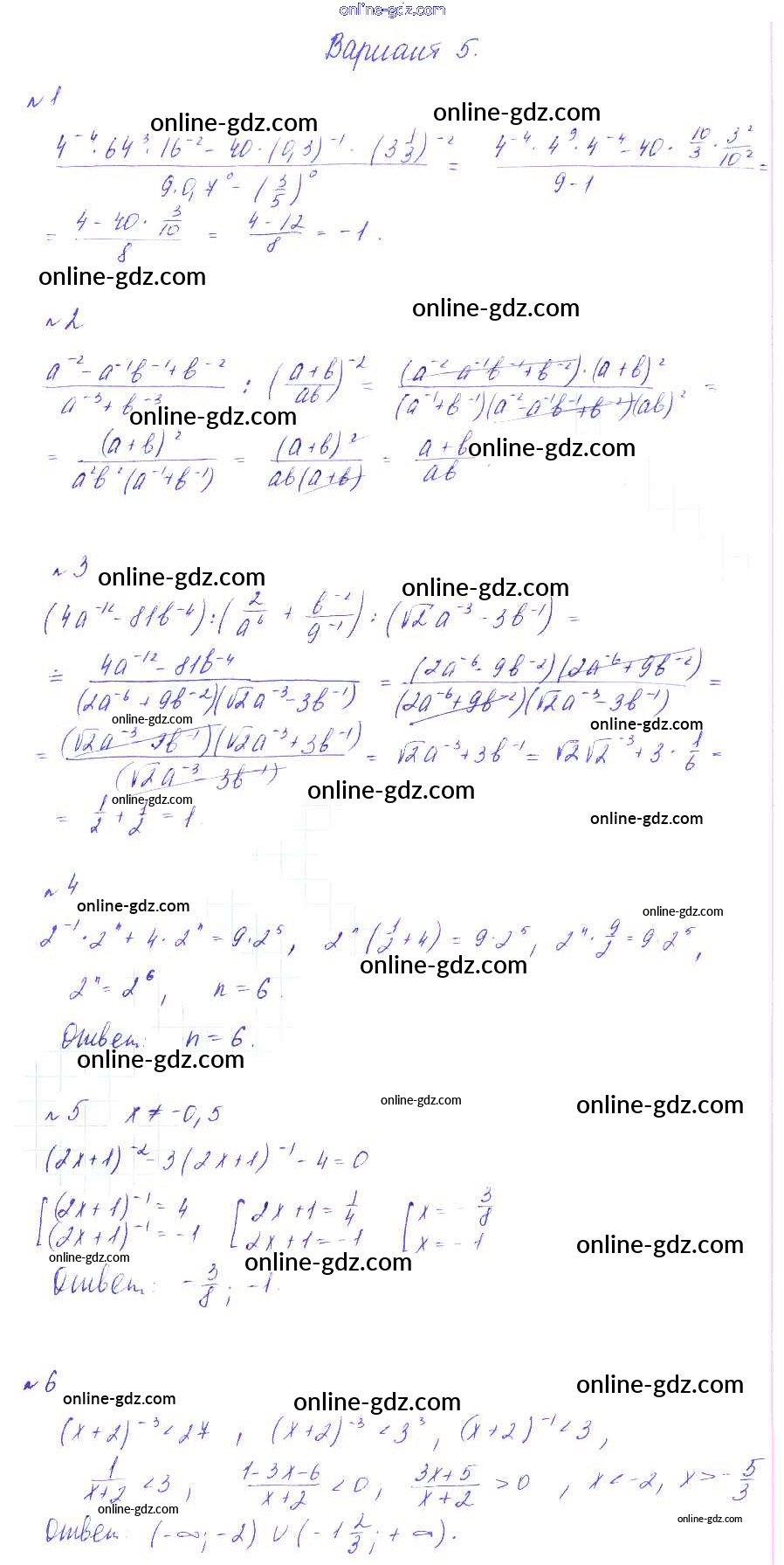 Готовые домашние задания по Алгебре за 9 класс Дидактические материалы Зив, Гольдич 2013 - СР-5. Степень с целым показателем Самостоятельные работы вариант 5