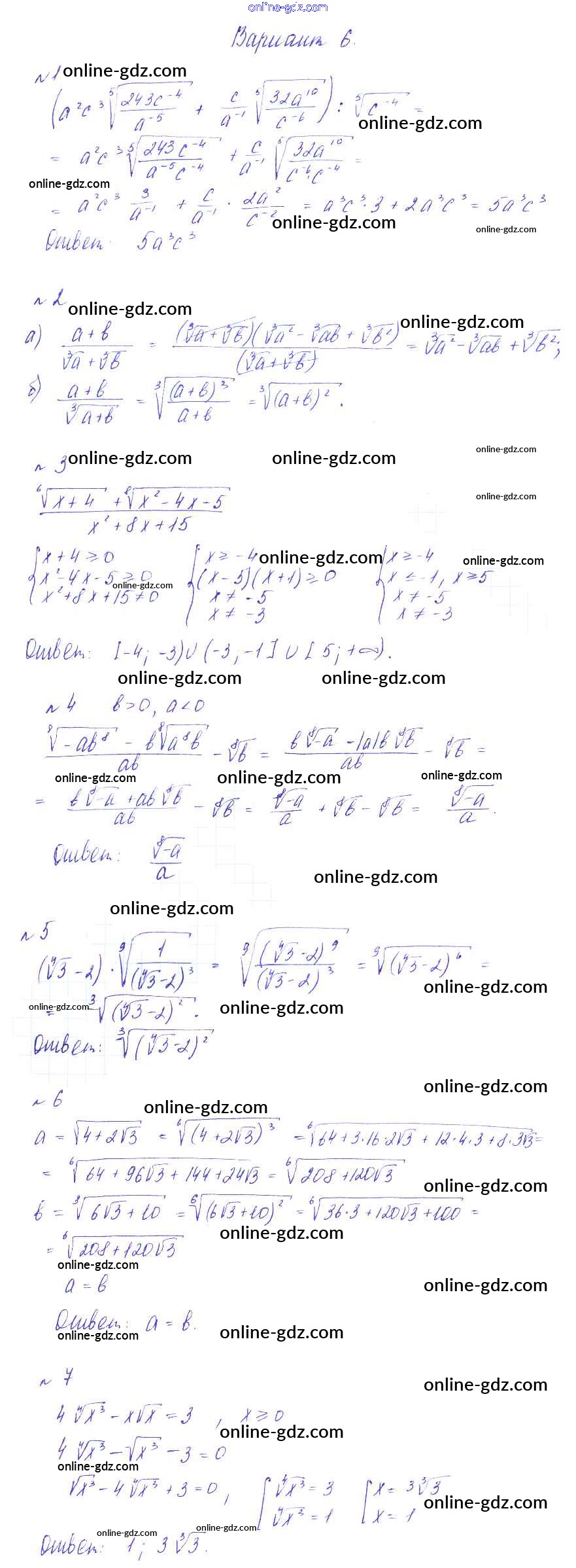 Готовые домашние задания по Алгебре за 9 класс Дидактические материалы Зив, Гольдич 2013 - СР-6. Корень натуральной степени Самостоятельные работы вариант 6