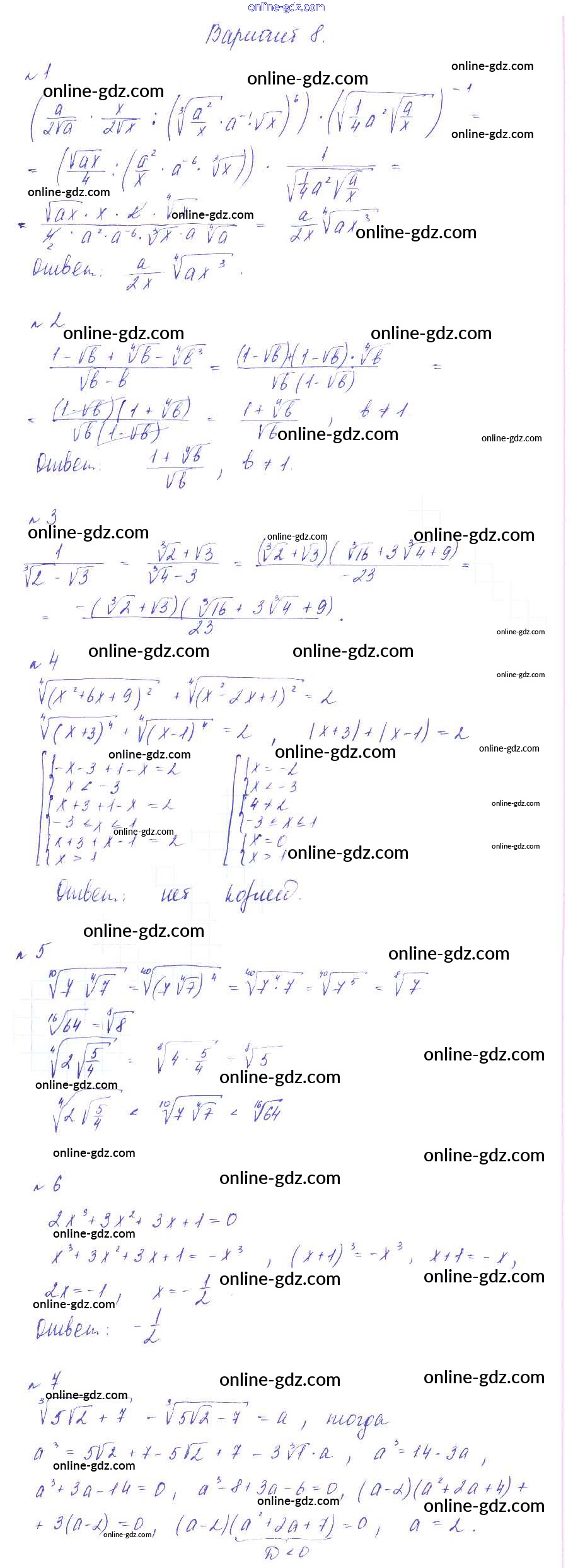 Готовые домашние задания по Алгебре за 9 класс Дидактические материалы Зив, Гольдич 2013 - СР-6. Корень натуральной степени Самостоятельные работы вариант 8