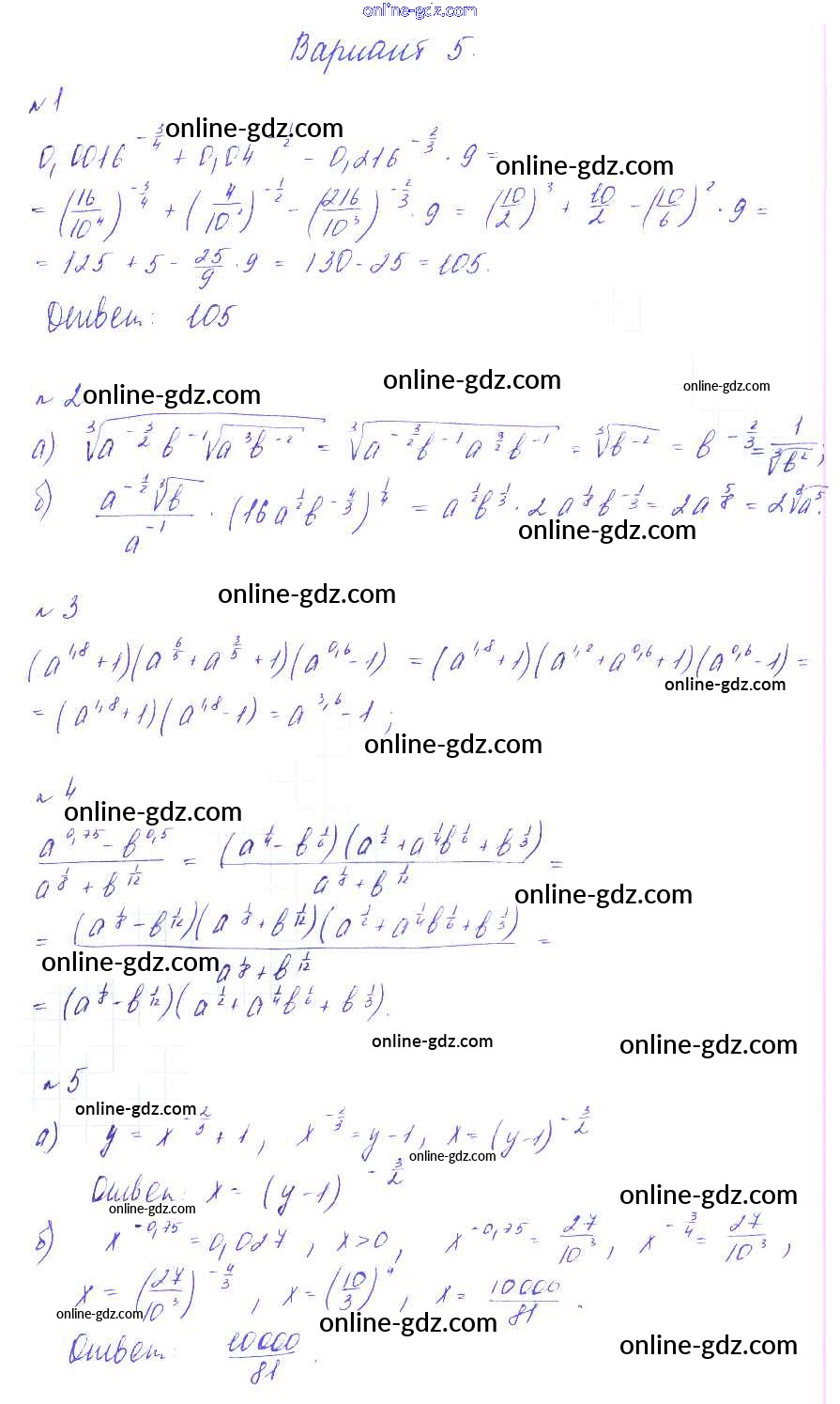 Готовые домашние задания по Алгебре за 9 класс Дидактические материалы Зив, Гольдич 2013 - СР-7. Степень с рациональным показателем Самостоятельные работы вариант 5