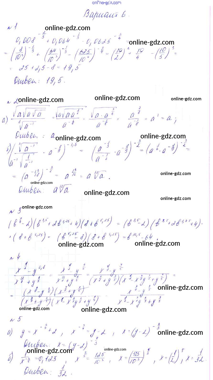 Готовые домашние задания по Алгебре за 9 класс Дидактические материалы Зив, Гольдич 2013 - СР-7. Степень с рациональным показателем Самостоятельные работы вариант 6