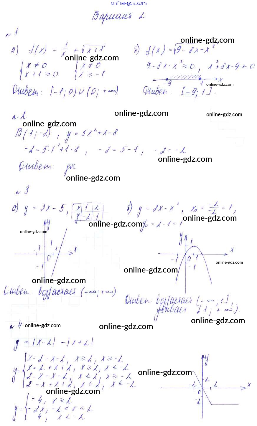 Готовые домашние задания по Алгебре за 9 класс Дидактические материалы Зив, Гольдич 2013 - СР-9. Область определения функции. Возрастание и убывание функции Самостоятельные работы вариант 2