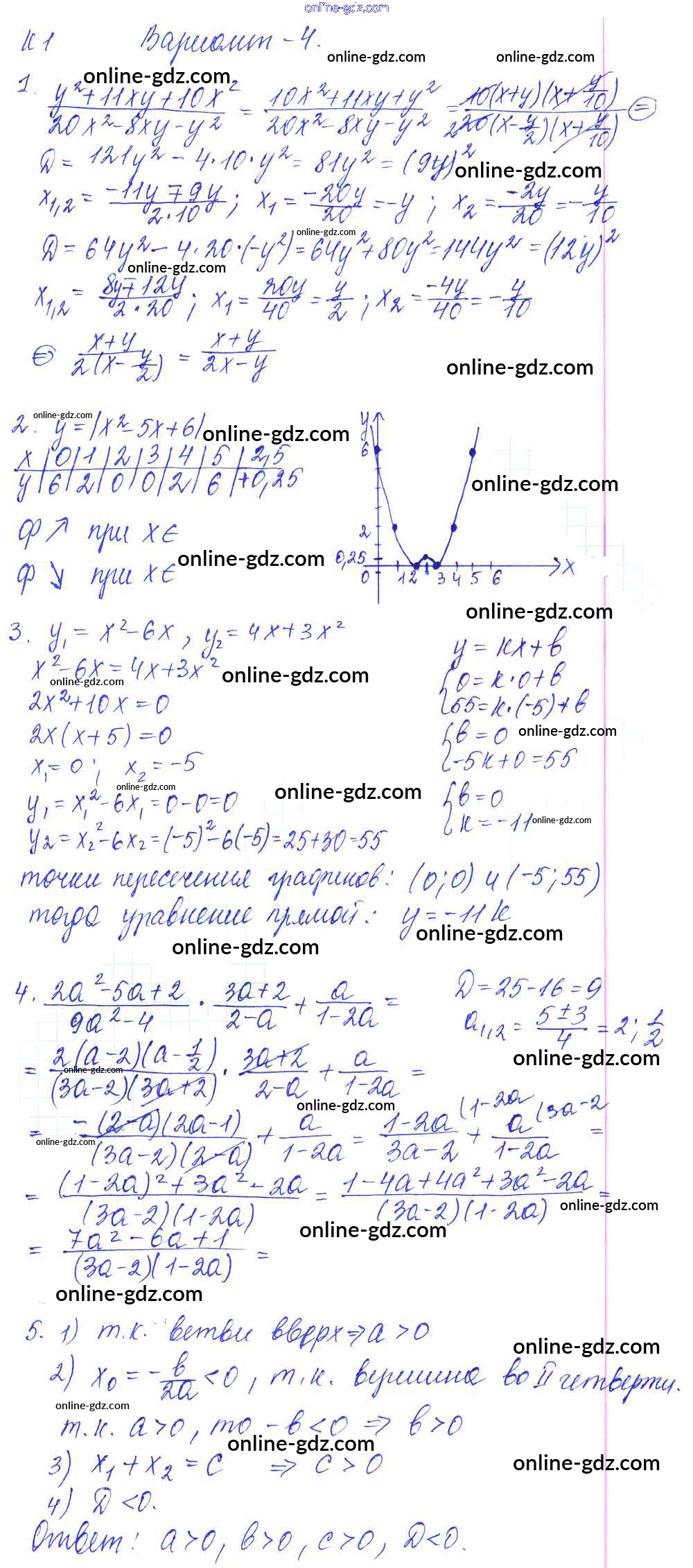 Готовые домашние задания по Алгебре за 9 класс Контрольные и самостоятельные работы Журавлев, Малышева УМК 2016 - К-1. Квадратичная функция Контрольные работы Вариант №4