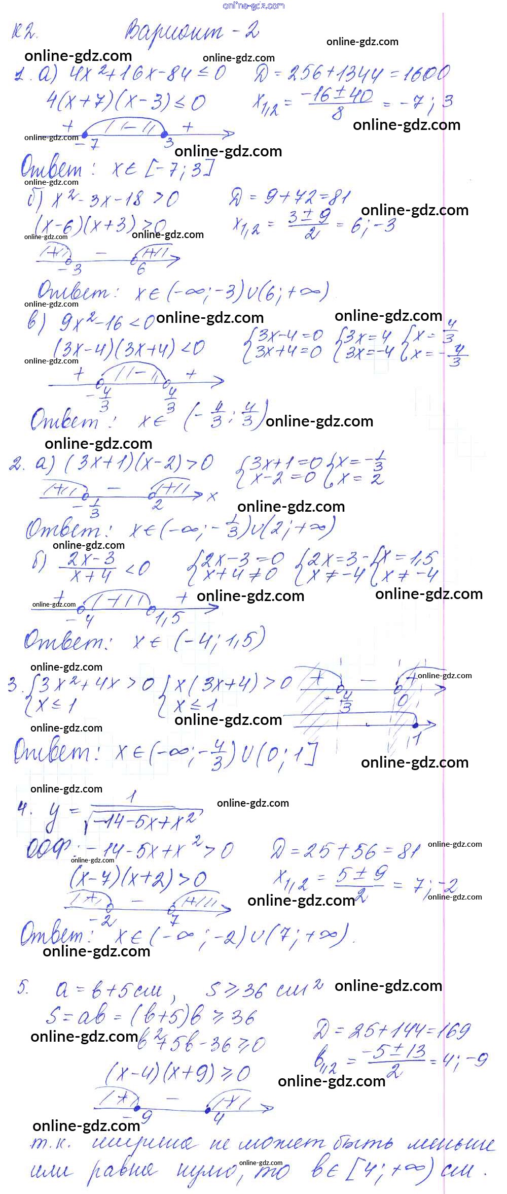 Готовые домашние задания по Алгебре за 9 класс Контрольные и самостоятельные работы Журавлев, Малышева УМК 2016 - К-2. Решение неравенств Контрольные работы Вариант №2