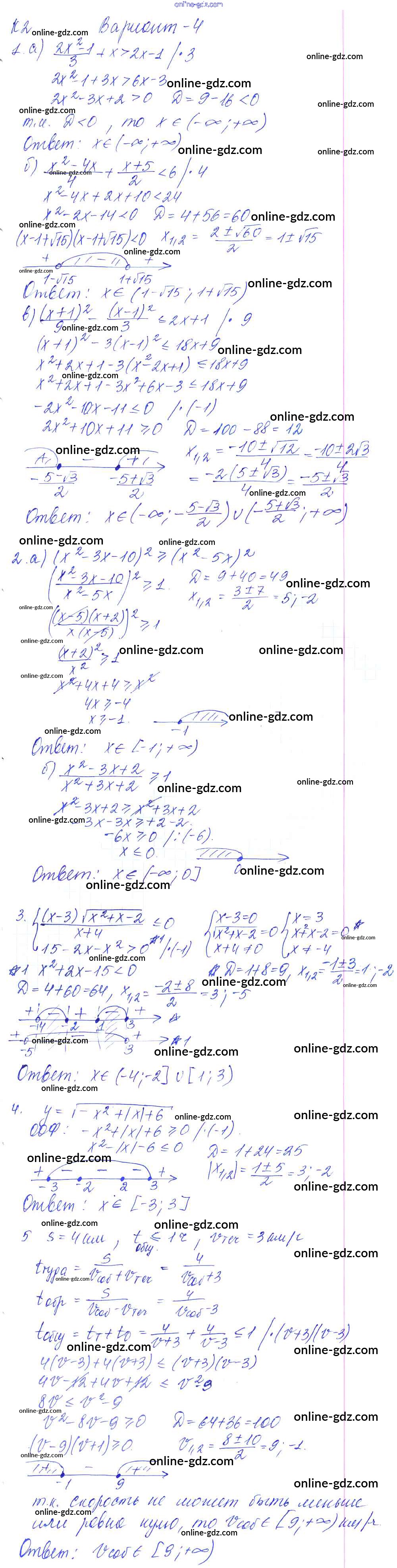 Готовые домашние задания по Алгебре за 9 класс Контрольные и самостоятельные работы Журавлев, Малышева УМК 2016 - К-2. Решение неравенств Контрольные работы Вариант №4