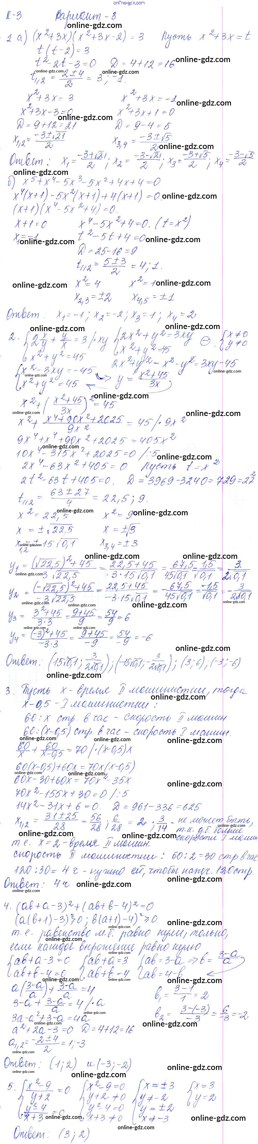 Готовые домашние задания по Алгебре за 9 класс Контрольные и самостоятельные работы Журавлев, Малышева УМК 2016 - К-3. Целые уравнения и системы уравнений Контрольные работы Вариант №3