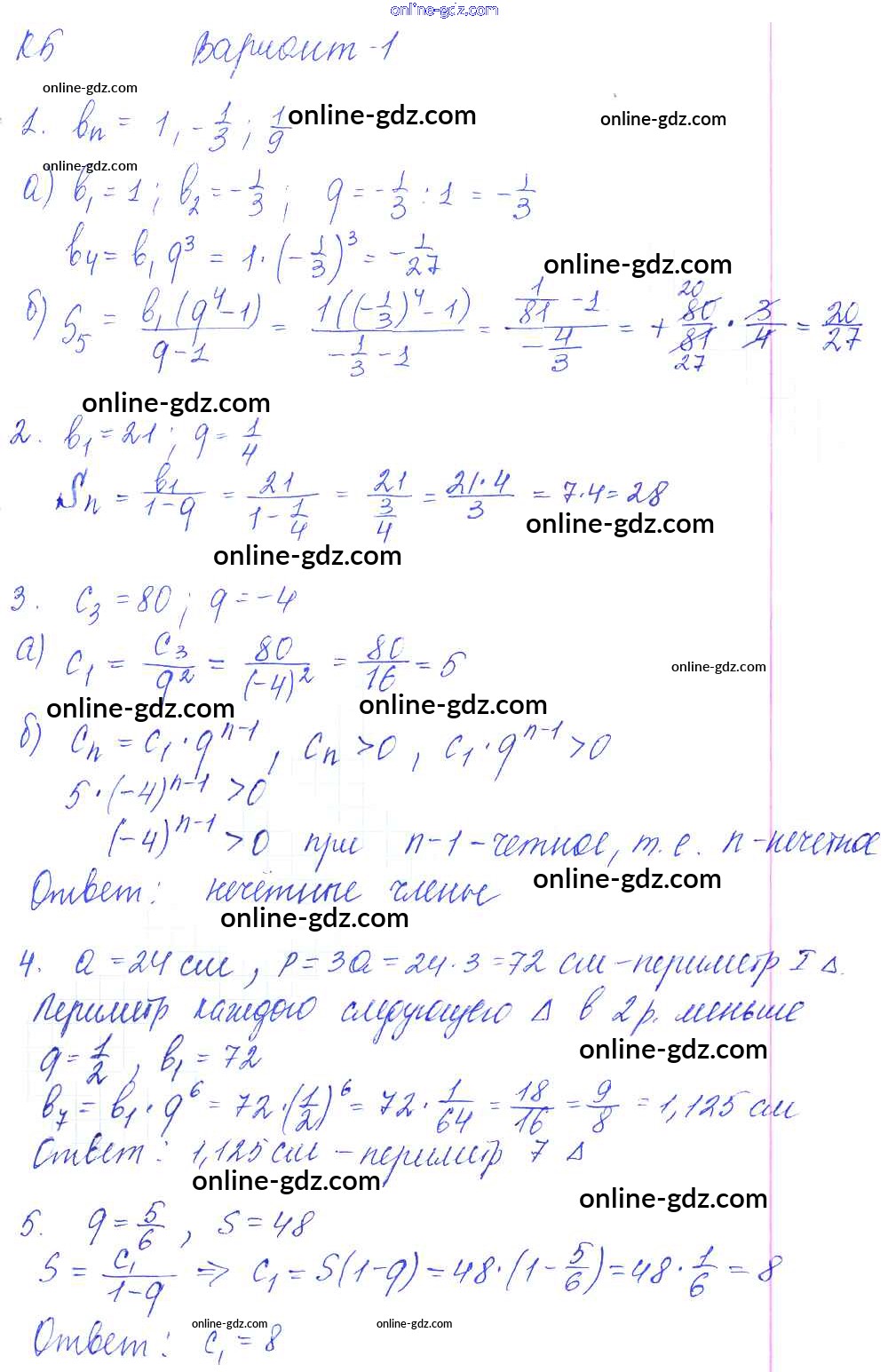 Готовые домашние задания по Алгебре за 9 класс Контрольные и самостоятельные работы Журавлев, Малышева УМК 2016 - К-5. Геометрическая прогрессия Контрольные работы Вариант №1