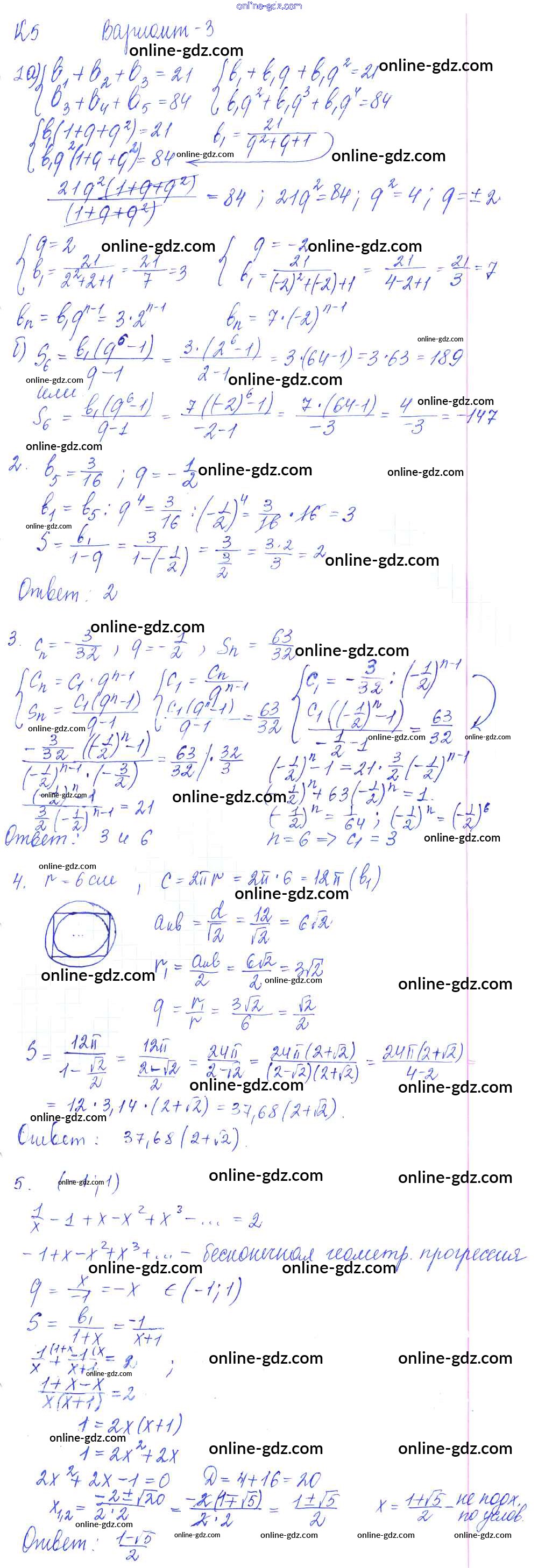 Готовые домашние задания по Алгебре за 9 класс Контрольные и самостоятельные работы Журавлев, Малышева УМК 2016 - К-5. Геометрическая прогрессия Контрольные работы Вариант №3