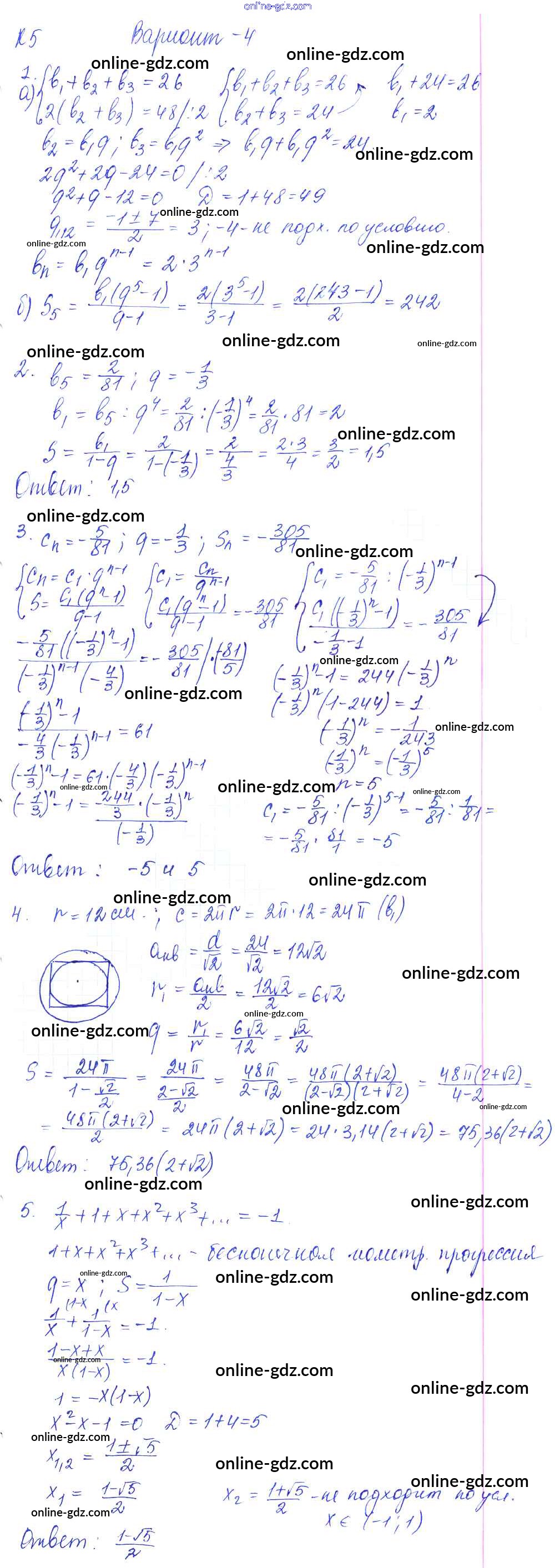 Готовые домашние задания по Алгебре за 9 класс Контрольные и самостоятельные работы Журавлев, Малышева УМК 2016 - К-5. Геометрическая прогрессия Контрольные работы Вариант №4