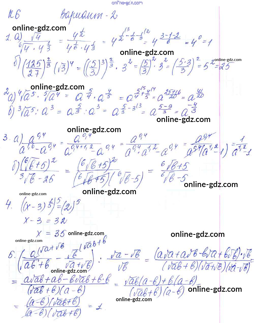 Готовые домашние задания по Алгебре за 9 класс Контрольные и самостоятельные работы Журавлев, Малышева УМК 2016 - К-6. Степень с рациональным показателем Контрольные работы Вариант №2