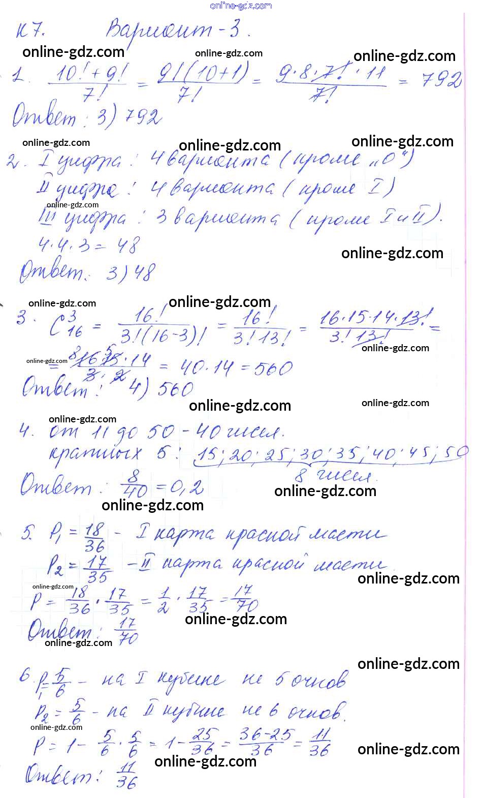 К-7. Элементы комбинаторики и теории вероятностей
