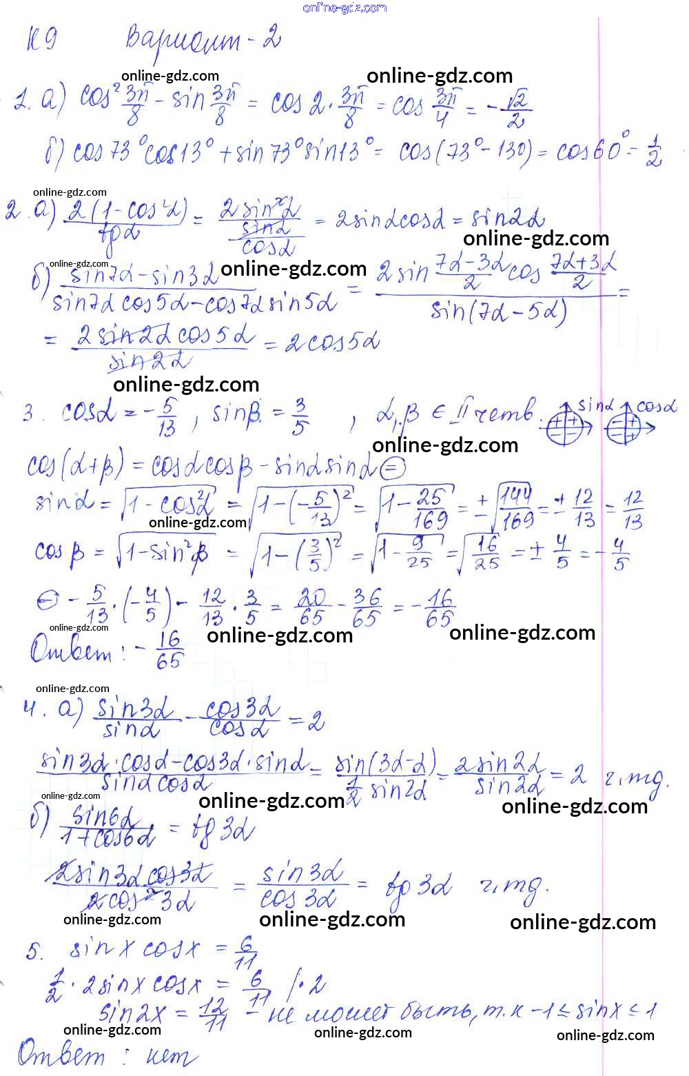 Готовые домашние задания по Алгебре за 9 класс Контрольные и самостоятельные работы Журавлев, Малышева УМК 2016 - К-9. Формулы сложения и их следствия Контрольные работы Вариант №2
