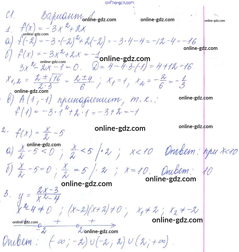 Готовые домашние задания по Алгебре за 9 класс Контрольные и самостоятельные работы Журавлев, Малышева УМК 2016 - С-1. Функции и их свойства Самостоятельные работы Вариант №1