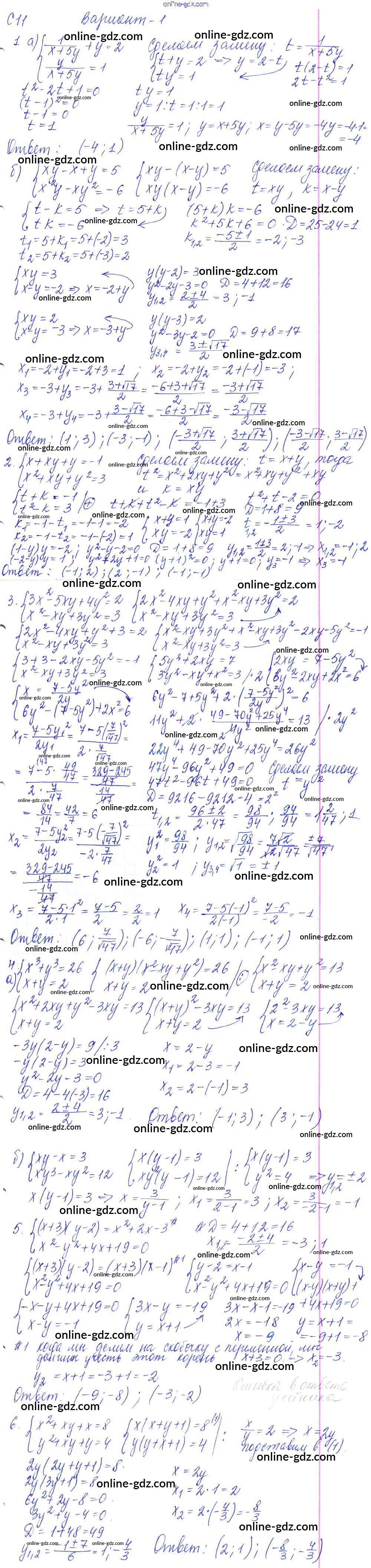 Готовые домашние задания по Алгебре за 9 класс Контрольные и самостоятельные работы Журавлев, Малышева УМК 2016 - С-11. Системы рациональных уравнений Самостоятельные работы Вариант №1