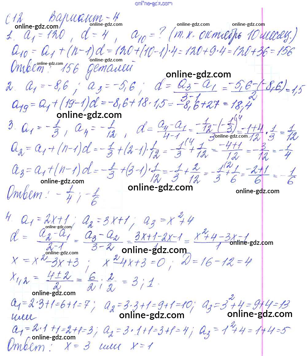 Готовые домашние задания по Алгебре за 9 класс Контрольные и самостоятельные работы Журавлев, Малышева УМК 2016 - С-12. Арифметическая прогрессия Самостоятельные работы Вариант №4