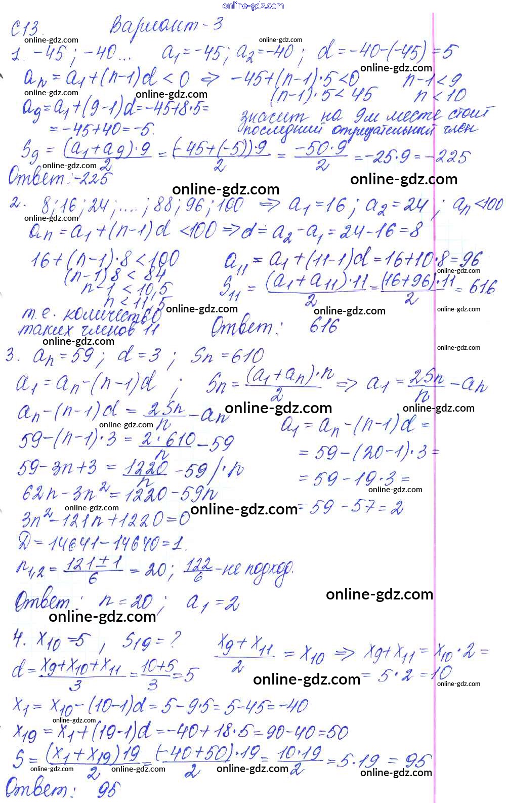 Готовые домашние задания по Алгебре за 9 класс Контрольные и самостоятельные работы Журавлев, Малышева УМК 2016 - С-13. Формула суммы n первых членов арифметической прогрессии Самостоятельные работы Вариант №3