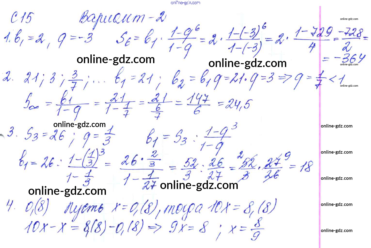 Готовые домашние задания по Алгебре за 9 класс Контрольные и самостоятельные работы Журавлев, Малышева УМК 2016 - С-15. Формула суммы первых n членов геометрической прогрессии Самостоятельные работы Вариант №2