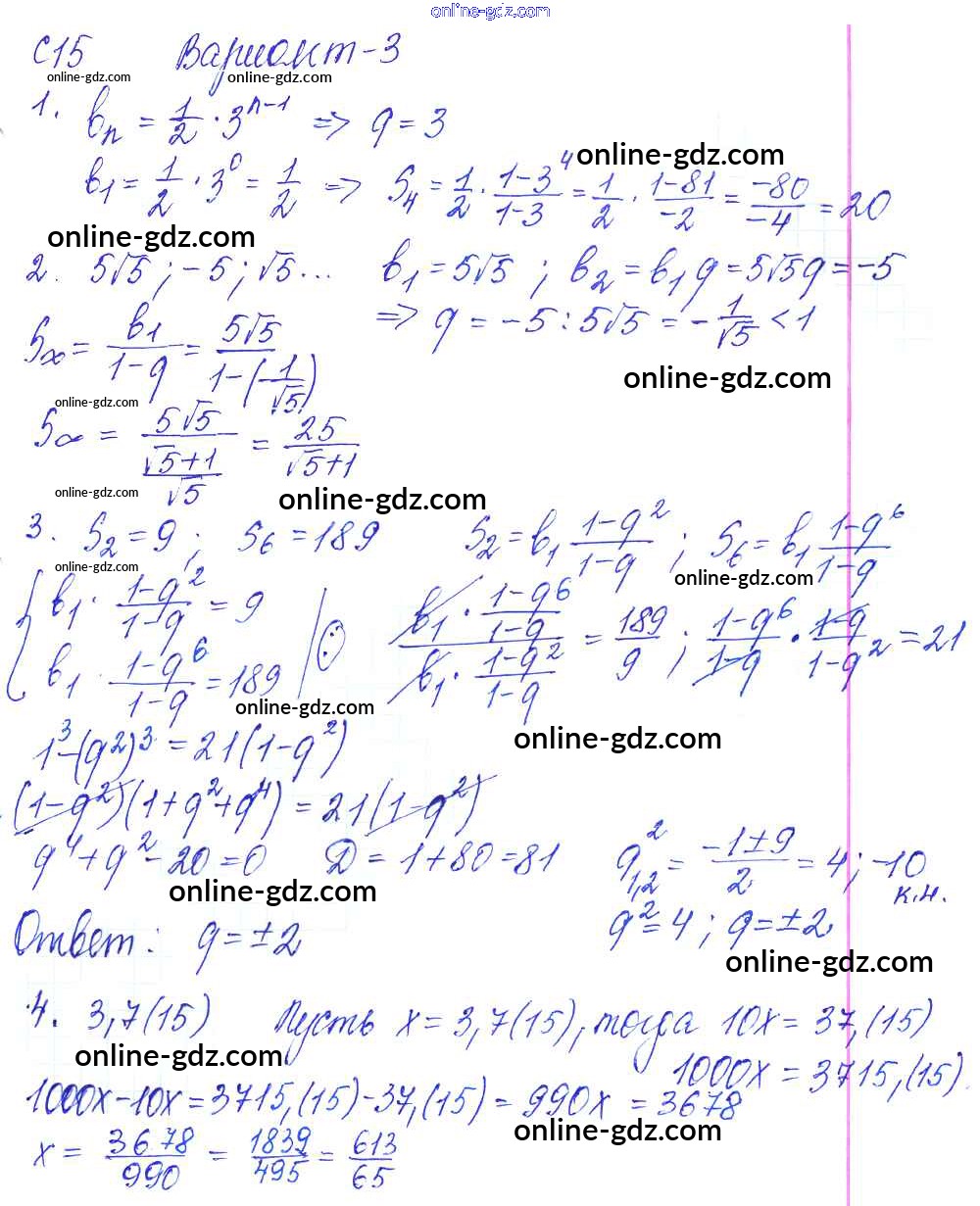 Готовые домашние задания по Алгебре за 9 класс Контрольные и самостоятельные работы Журавлев, Малышева УМК 2016 - С-15. Формула суммы первых n членов геометрической прогрессии Самостоятельные работы Вариант №3