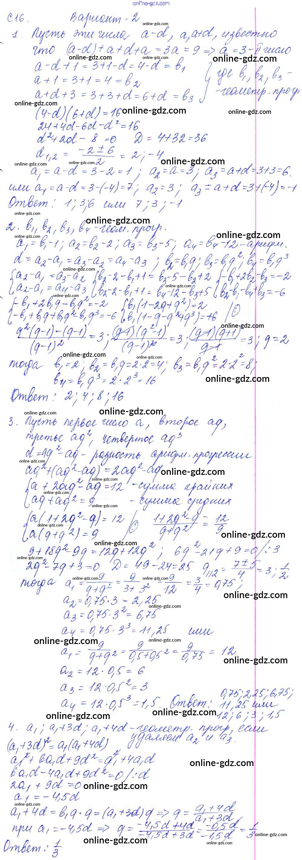 Готовые домашние задания по Алгебре за 9 класс Контрольные и самостоятельные работы Журавлев, Малышева УМК 2016 - С-16. Комбинированные задачи на прогрессии Самостоятельные работы Вариант №2