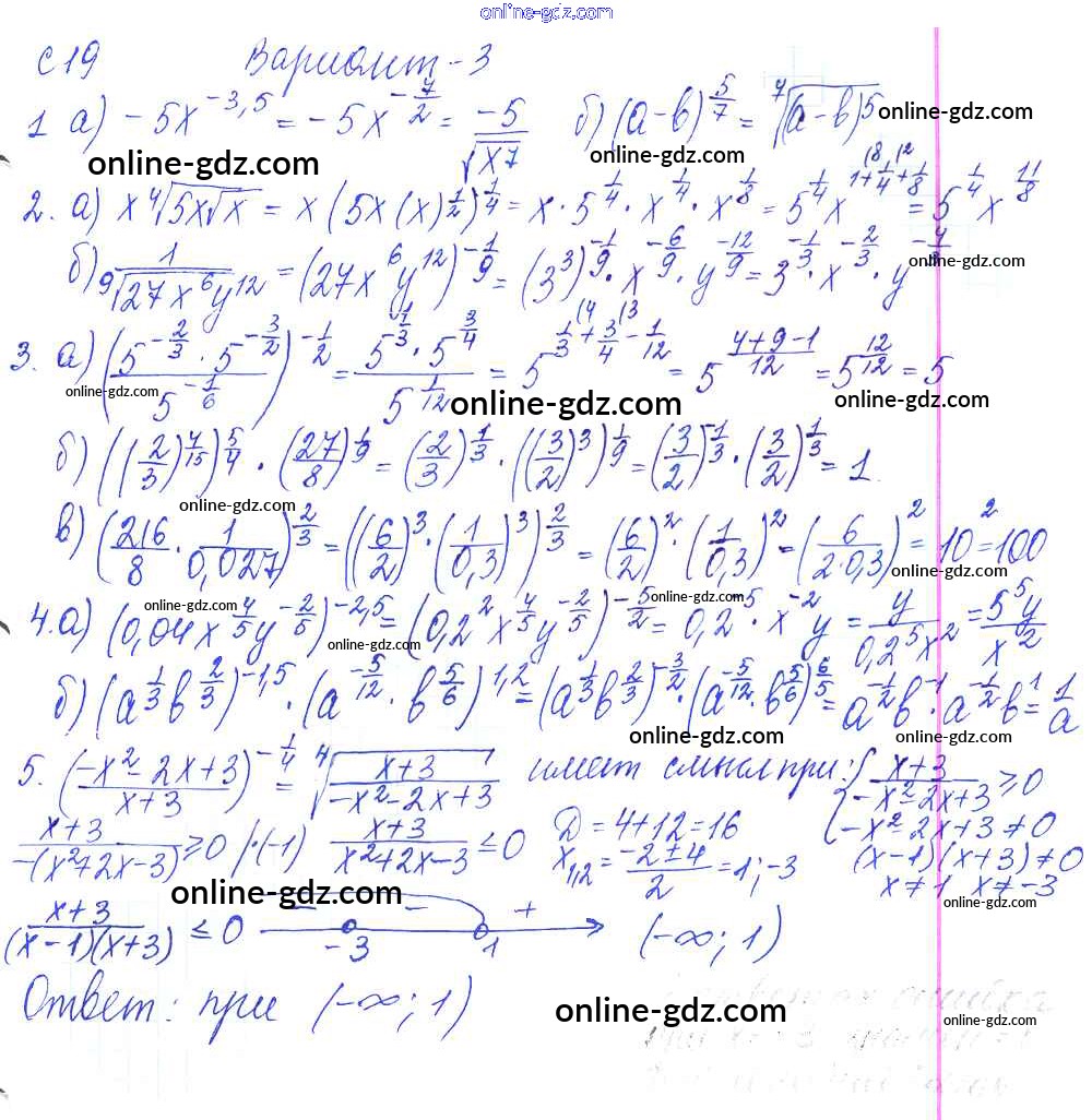Готовые домашние задания по Алгебре за 9 класс Контрольные и самостоятельные работы Журавлев, Малышева УМК 2016 - С-19. Определение и свойства степени с дробным показателем Самостоятельные работы Вариант №3
