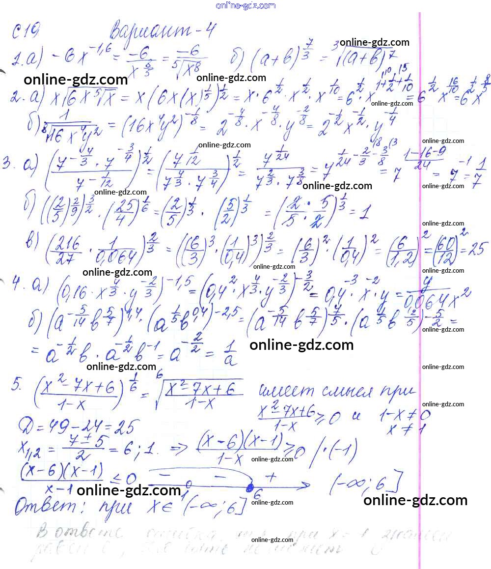 Готовые домашние задания по Алгебре за 9 класс Контрольные и самостоятельные работы Журавлев, Малышева УМК 2016 - С-19. Определение и свойства степени с дробным показателем Самостоятельные работы Вариант №4