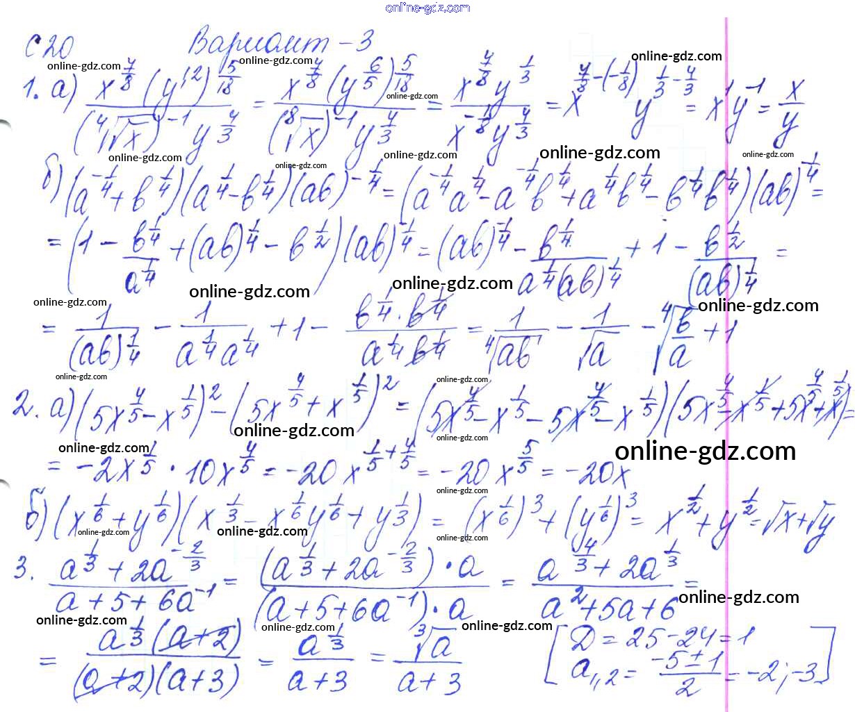 Готовые домашние задания по Алгебре за 9 класс Контрольные и самостоятельные работы Журавлев, Малышева УМК 2016 - С-20. Преобразование степенных выражений с рациональными показателями Самостоятельные работы Вариант №3