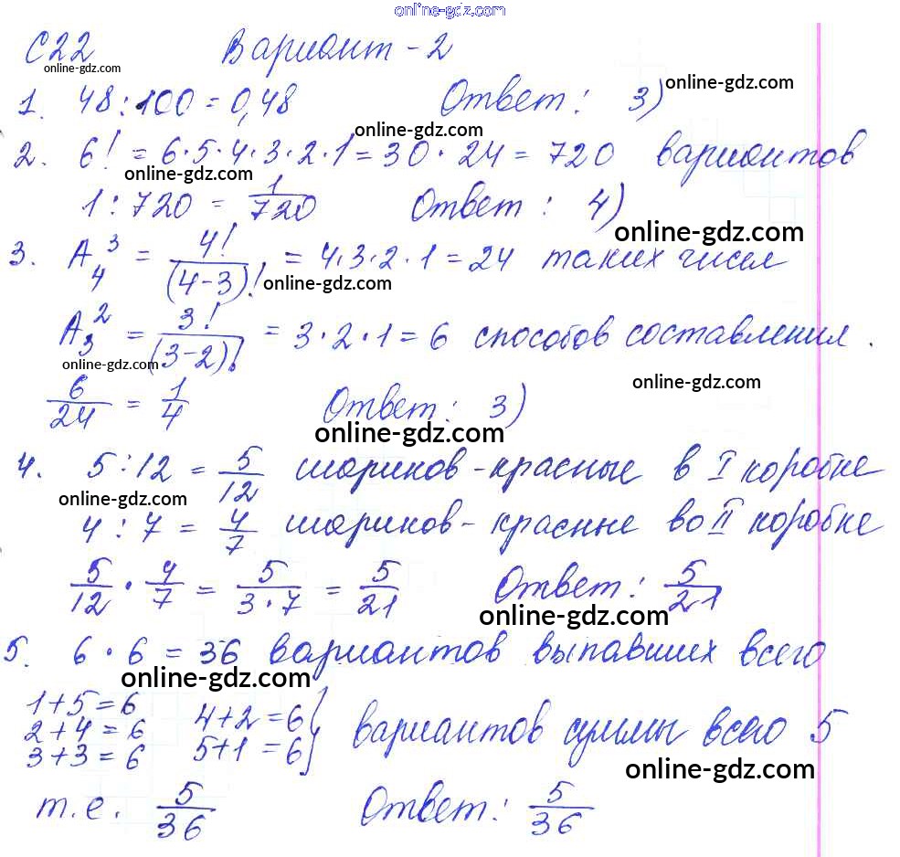 Готовые домашние задания по Алгебре за 9 класс Контрольные и самостоятельные работы Журавлев, Малышева УМК 2016 - С-22. Начальные сведения из теории вероятностей Самостоятельные работы Вариант №2