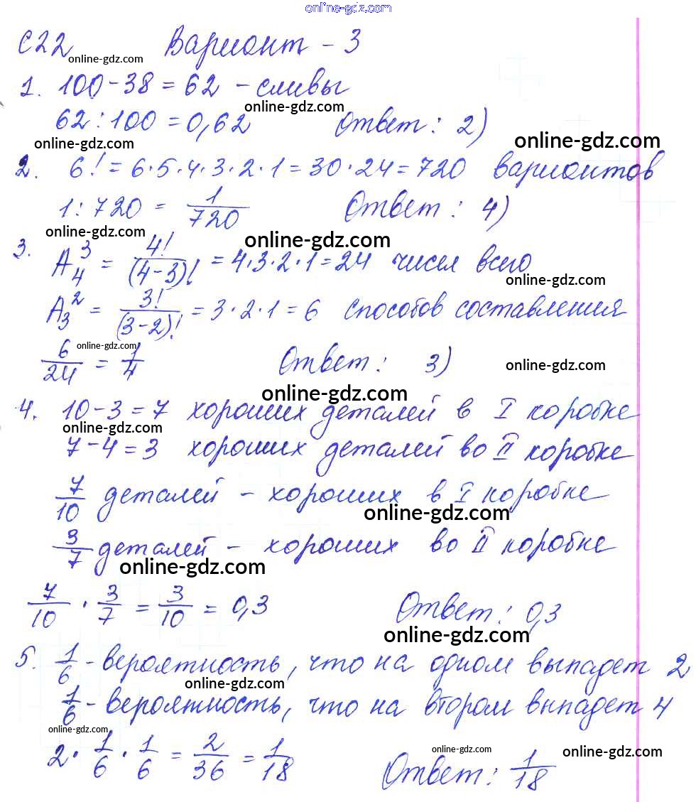 Готовые домашние задания по Алгебре за 9 класс Контрольные и самостоятельные работы Журавлев, Малышева УМК 2016 - С-22. Начальные сведения из теории вероятностей Самостоятельные работы Вариант №3