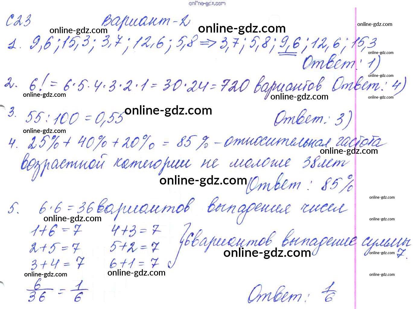 Готовые домашние задания по Алгебре за 9 класс Контрольные и самостоятельные работы Журавлев, Малышева УМК 2016 - С-23. Элементы статистики и теории вероятностей Самостоятельные работы Вариант №2