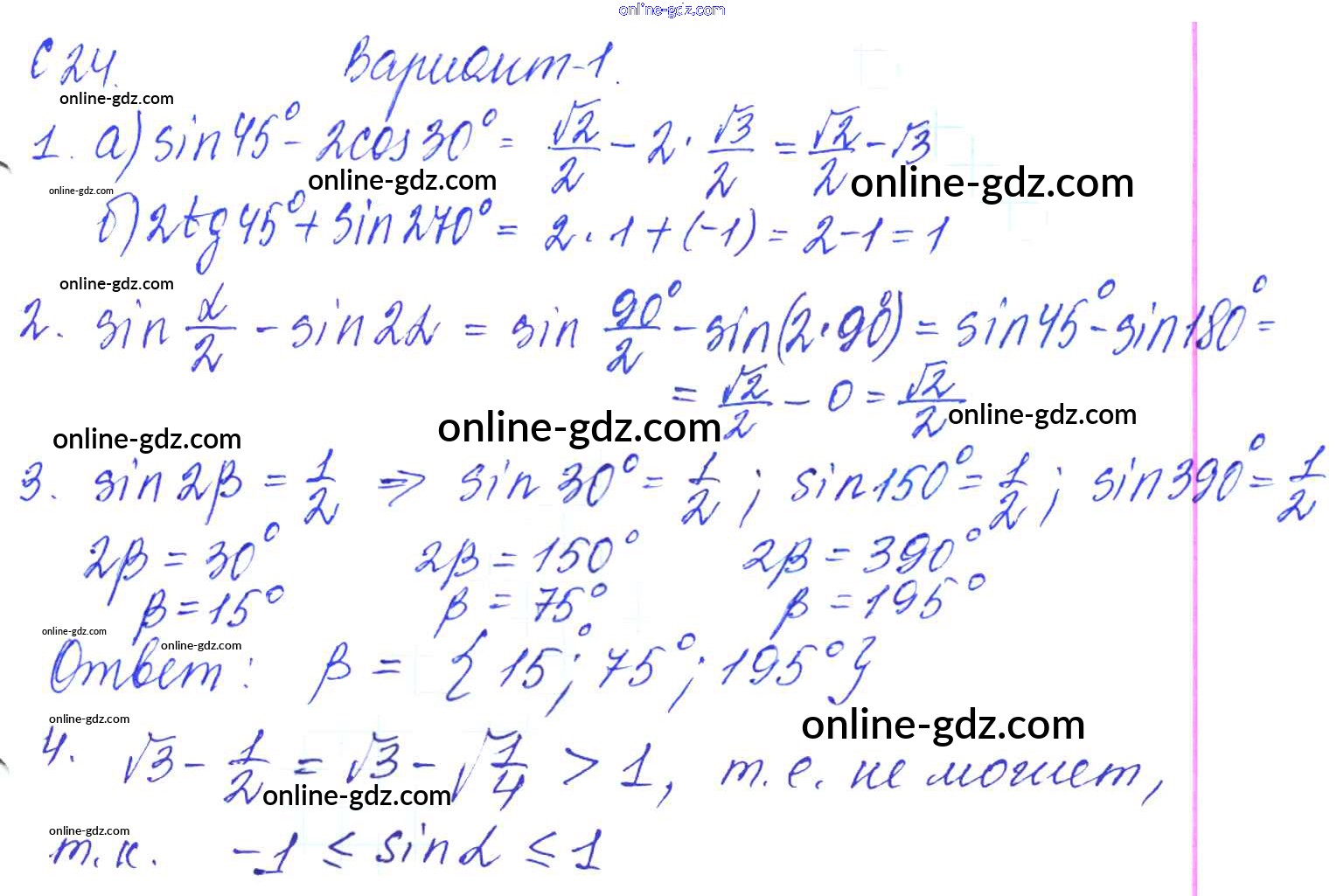 Готовые домашние задания по Алгебре за 9 класс Контрольные и самостоятельные работы Журавлев, Малышева УМК 2016 - С-24. Определение тригонометрических функций Самостоятельные работы Вариант №1