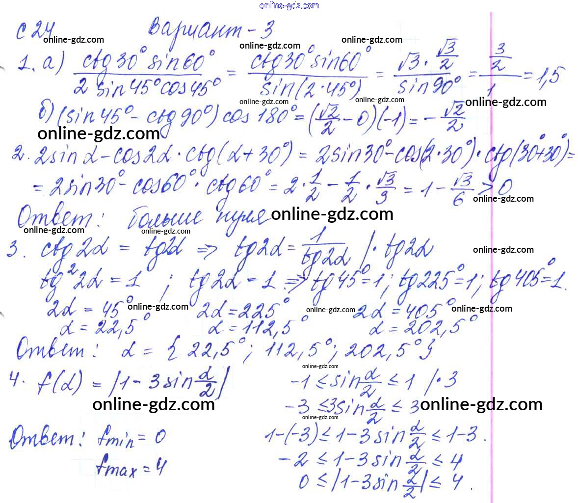 Готовые домашние задания по Алгебре за 9 класс Контрольные и самостоятельные работы Журавлев, Малышева УМК 2016 - С-24. Определение тригонометрических функций Самостоятельные работы Вариант №3