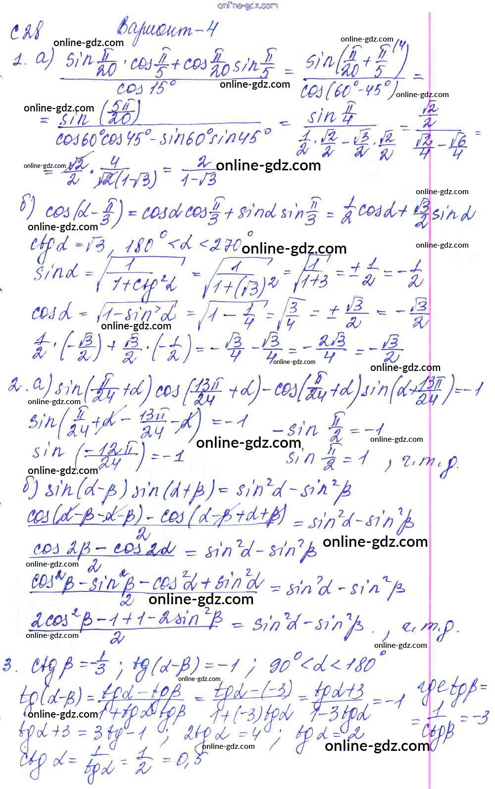 Готовые домашние задания по Алгебре за 9 класс Контрольные и самостоятельные работы Журавлев, Малышева УМК 2016 - С-28. Формулы сложения Самостоятельные работы Вариант №4