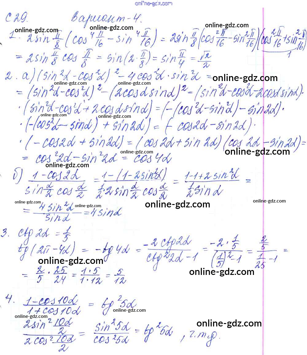 Готовые домашние задания по Алгебре за 9 класс Контрольные и самостоятельные работы Журавлев, Малышева УМК 2016 - С-29. Формулы двойного угла Самостоятельные работы Вариант №4