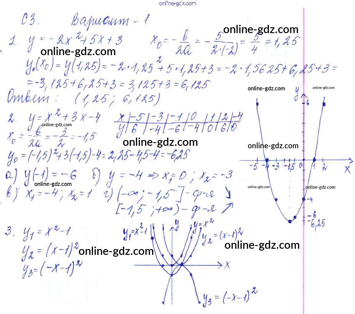 Готовые домашние задания по Алгебре за 9 класс Контрольные и самостоятельные работы Журавлев, Малышева УМК 2016 - С-3. График квадратичной функции Самостоятельные работы Вариант №1