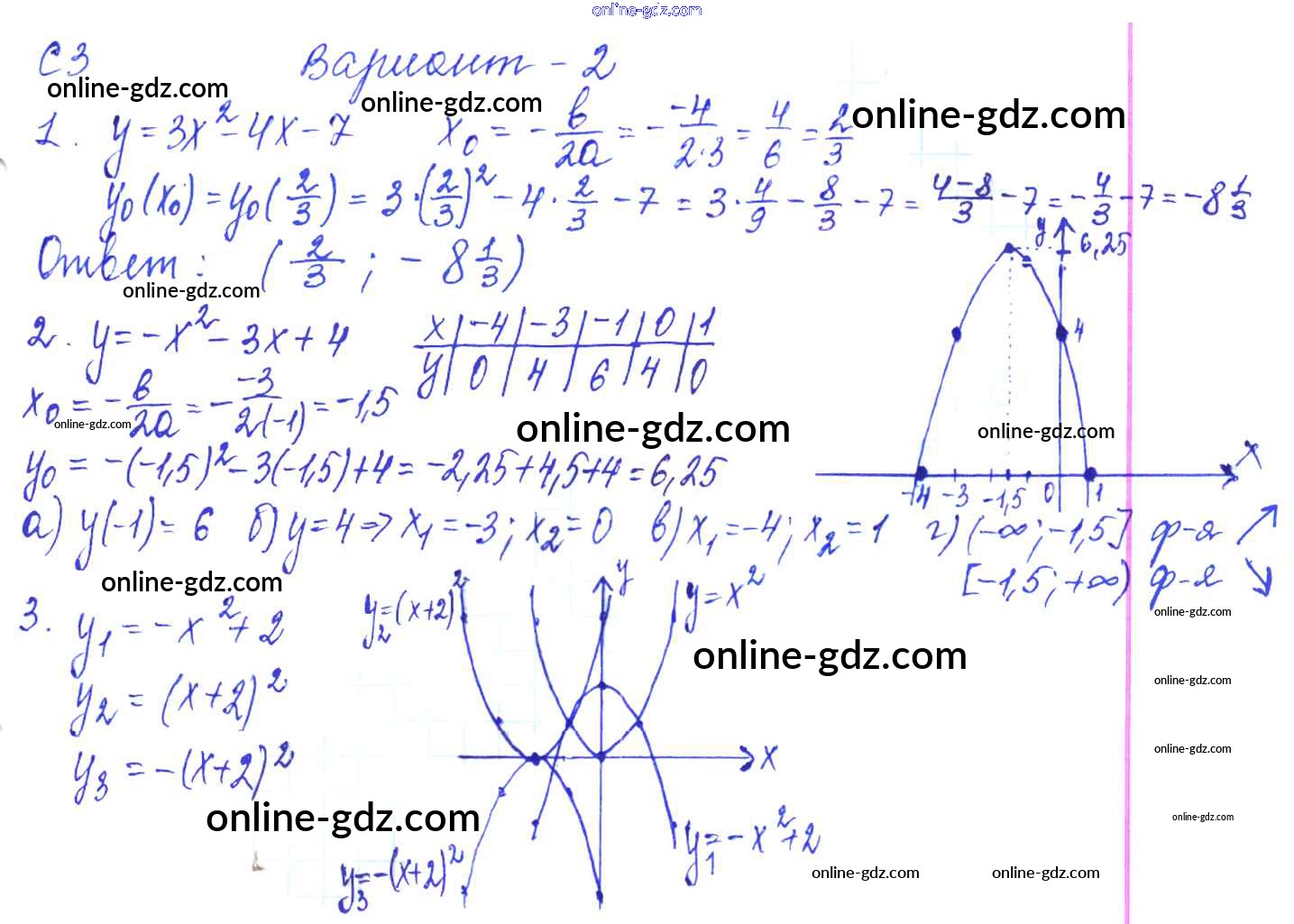 Готовые домашние задания по Алгебре за 9 класс Контрольные и самостоятельные работы Журавлев, Малышева УМК 2016 - С-3. График квадратичной функции Самостоятельные работы Вариант №2