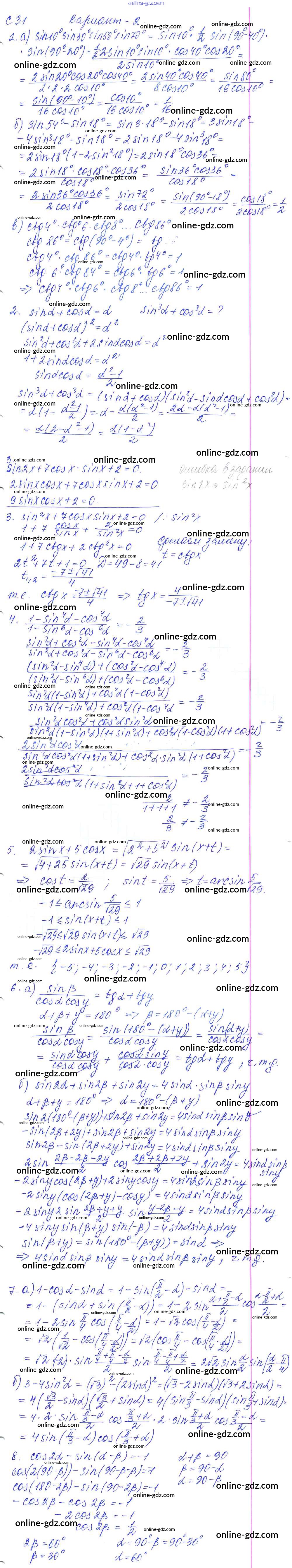 Готовые домашние задания по Алгебре за 9 класс Контрольные и самостоятельные работы Журавлев, Малышева УМК 2016 - С-31. Дополнительные тригонометрические задачи Самостоятельные работы Вариант №2